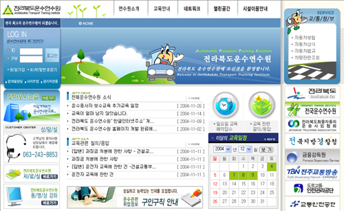 전라북도 운수연수원 홈페이지 개발 프로젝트는 총 개발기간 3주(2004.10.04 ~ 2004. 10. 25)가 소요된 프로젝트로 연수원 소개 및 일요일 예약 프로그램 등 운수연수원 관련 다양한 정보를 제공하고 있습니다.