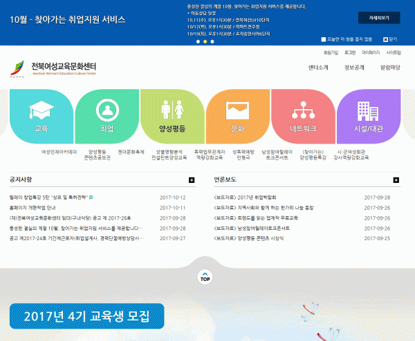 전북여성교육문화센터 홈페이지 리뉴얼 전북여성교육문화센터 홈페이지 리뉴얼 웹플커뮤니케이션 http://www.jbwc.re.kr + 7673 DATE 17-10-12 10:51 이전글소통뉴스 3.0 리뉴얼 17.10.26 다음글우리영농조합법인 패키지 디자인 및 박스제작 17.09.22 목록목록 댓글 0 댓글목록 등록된 댓글이 없습니다.