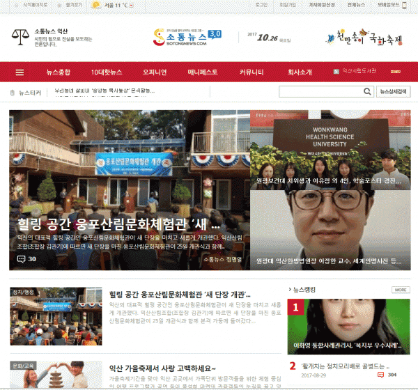 소통뉴스 3.0 리뉴얼 소통뉴스 웹플커뮤니케이션 http://www.sotongnews.com + 8355 DATE 17-10-26 11:03 이전글꿈트는치즈N스쿨 18.01.16 다음글전북여성교육문화센터 홈페이지 리뉴얼 17.10.12 목록목록 댓글 0 댓글목록 등록된 댓글이 없습니다.