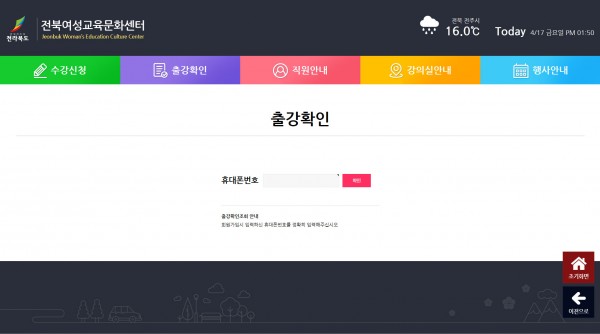 전북여성교육문화센터 키오스크 모드 시스템 개발